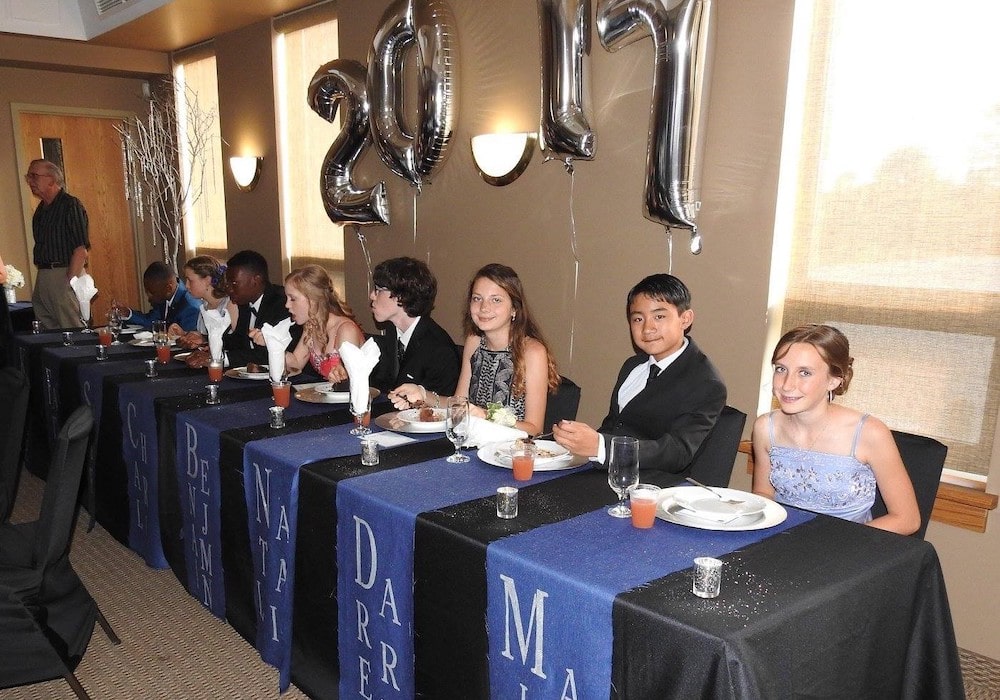卒業式のプログラムとして、「卒業証書授与」や「アワードの受賞」以外にも、卒業生が赤ちゃんの頃からの写真が満載の「スライドショー」や「在校生からのお祝いのメッセージ」「パフォーマンス」が続きます。