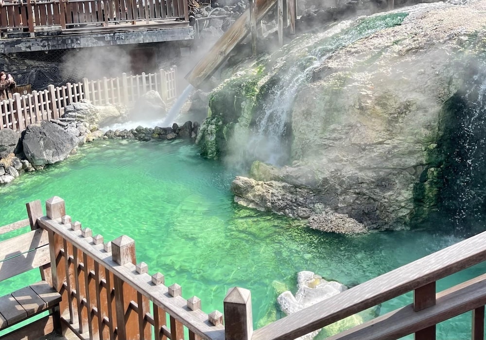 父、息子、夫と今年行った草津温泉の湯畑