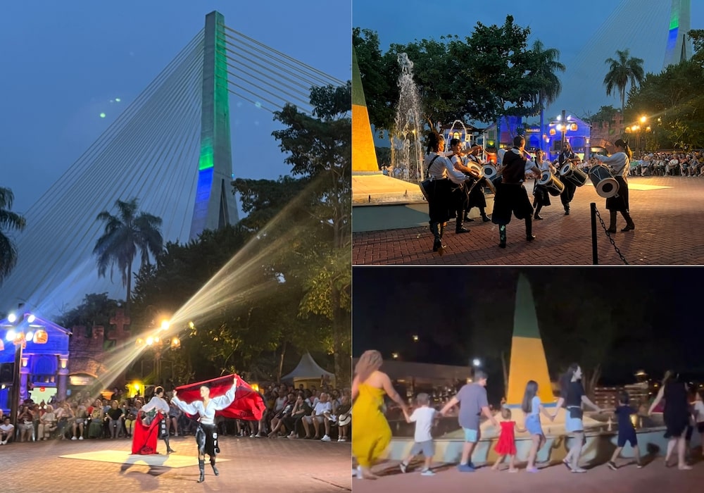 「Marco das Três Fronteiras」では夜にイベントがあり、ライトショーや民族ダンスショーも行われます。