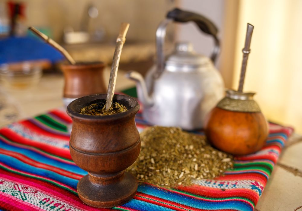 マテ茶は南米で広く飲まれているハーブティで、主にパラグアイやアルゼンチン、ブラジル南部で親しまれています。マテという木の葉を乾燥・粉砕して作られ、専用の容器とストローで飲むのが特徴です。