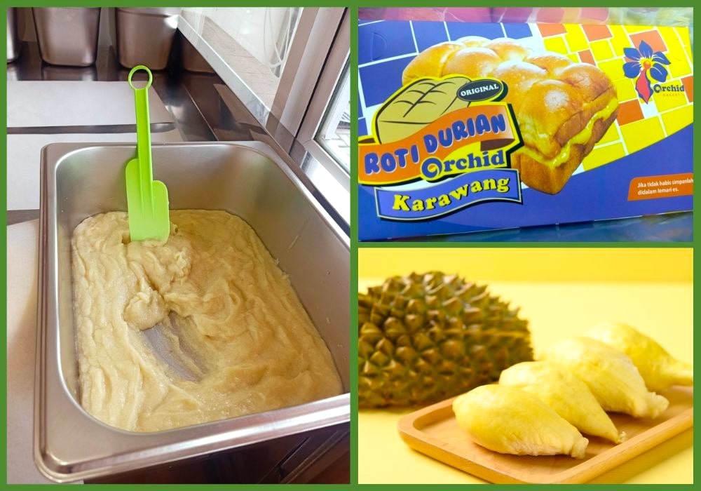 インドネシアの西ジャワ州を中心に展開する「Orchid Bakery」というお店で、ドリアンパンを買うことができます。看板にはインドネシア語でドリアンパンを意味する「Roti Durian」と大きく書かれています。