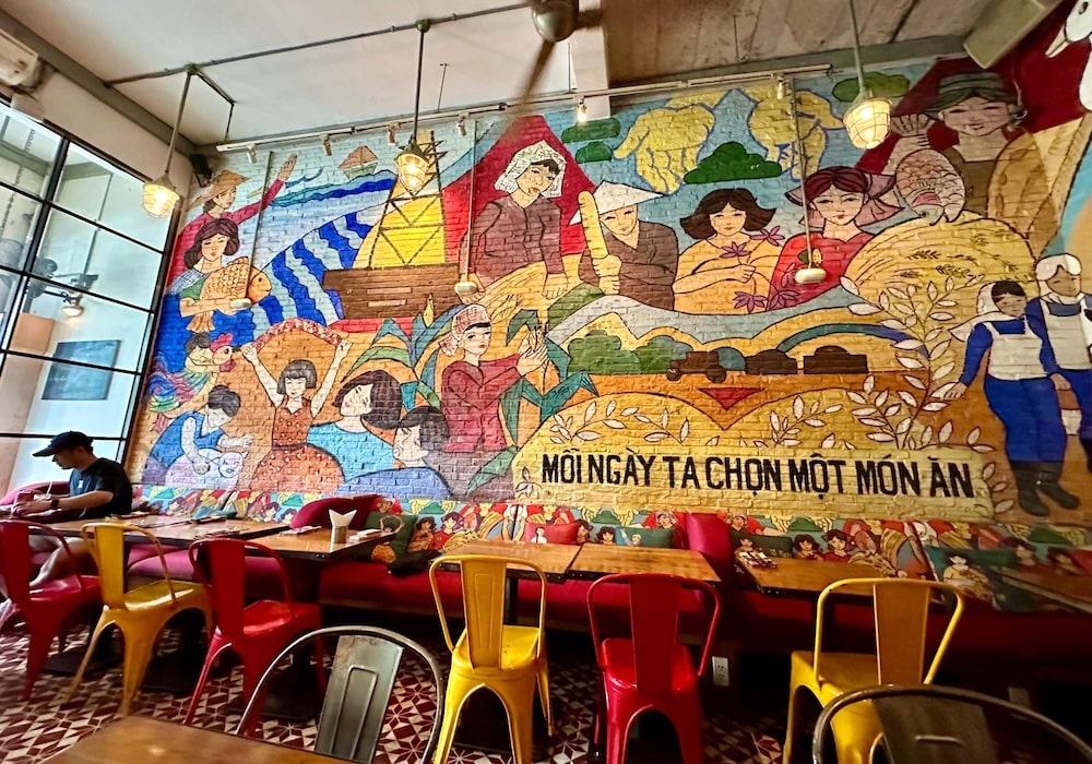 建国記念日や統一記念日といった節目に街角に登場する告知ポスターはもちろん、カフェのインテリアや雑貨アイテム(ポスターやスマホケースなど)にも使われており、「ベトナムらしいレトロアート」としての地位を確立しているようにも感じます。
