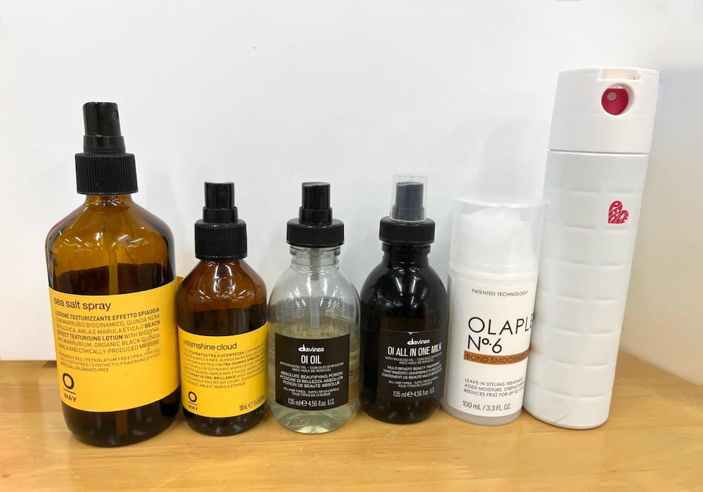 右から3番目のダヴィネスオイミルクは、ドライヤー前につける洗い流さないトリートメントです。